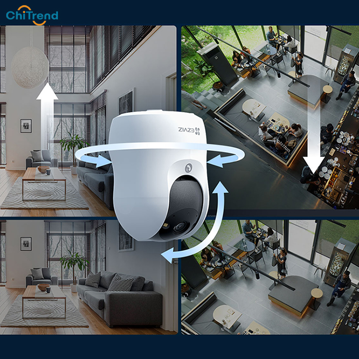 Camera sở hữu ống kính cao cấp tiêu cự 4mm với khẩu độ lớn F1.6 cho phép thu sáng tốt hơn, kết hợp với góc nhìn rộng 110° (đường chéo), 92° (ngang) và 51° (dọc), mang lại tầm quan sát bao quát, giảm thiểu điểm mù. Đặc biệt, thiết bị còn hỗ trợ khả năng quay quét 360° với tiện ích xoay ngang 350° và xoay dọc 85°, dễ dàng điều khiển qua ứng dụng EZVIZ trên điện thoại, giúp bạn quản lý không gian thuận tiện mọi lúc mọi nơi.