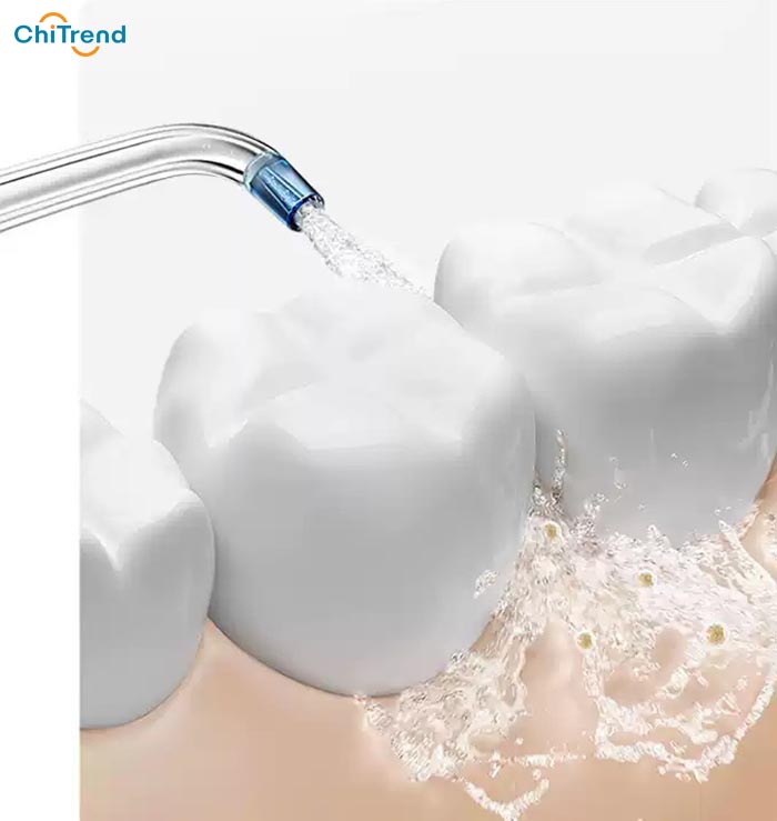 – Vòi phun vi bọt: dòng nước rộng bao phủ các khoảng trống giữa các răng và làm sạch các điểm mù một cách hiệu quả.