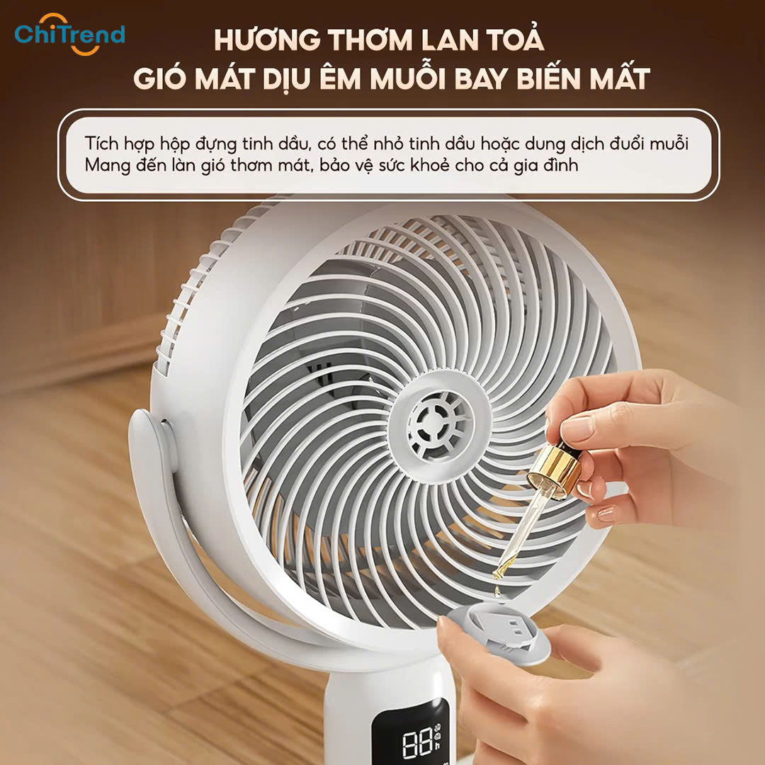 Sản phẩm này không chỉ mang đến luồng gió mát đa chiều, làm dịu không gian nhanh chóng, mà còn tích hợp hàng loạt tiện ích đáng giá như điều khiển bằng giọng nói AI, 8 cấp độ gió, 3 chế độ tùy chỉnh linh hoạt, hẹn giờ lên đến 12 tiếng và khay tinh dầu giúp lan tỏa hương thơm dịu nhẹ. Hứa hẹn sẽ giúp bạn tận hưởng cảm giác mát mẻ, sảng khoái và tự do làm những công việc yêu thích.